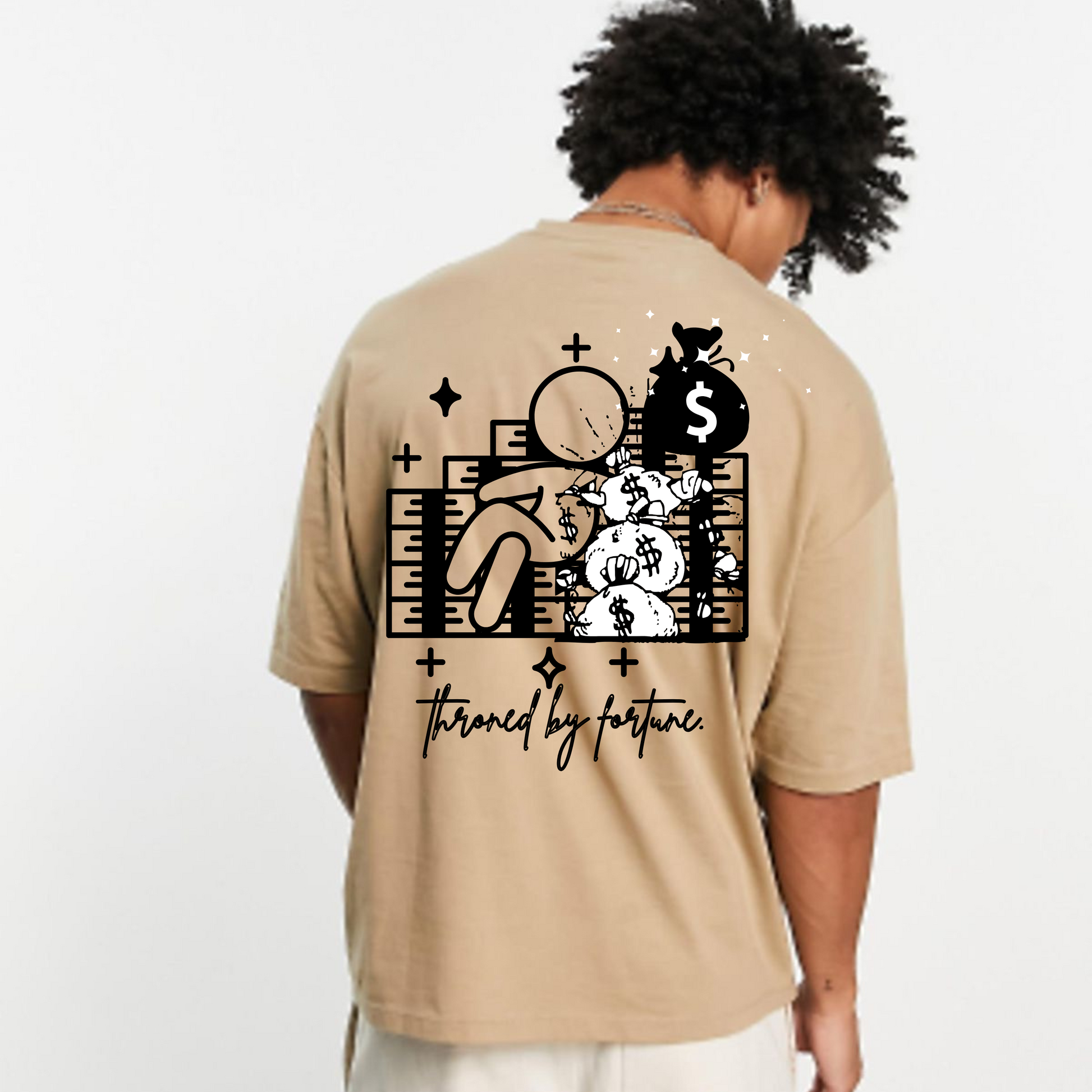 Elevate your streetwear game with the Throned by Fortune Tee from Billionairez. Featuring bold, high-density prints of stacked cash and wealth icons, this oversized fit makes a statement of dominance and success. Made with ultra-soft 240 GSM 100% cotton, this tee brings Gen-Z style with ultimate comfort—perfect for those who rule their hustle and relax like royalty. Skin-friendly, breathable, and undeniably powerful.