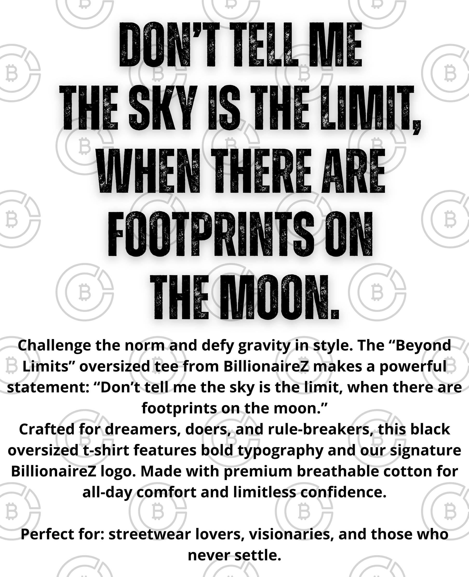 Challenge the norm and defy gravity in style. The “Beyond Limits” oversized tee from BillionaireZ makes a powerful statement: “Don’t tell me the sky is the limit, when there are footprints on the moon.”