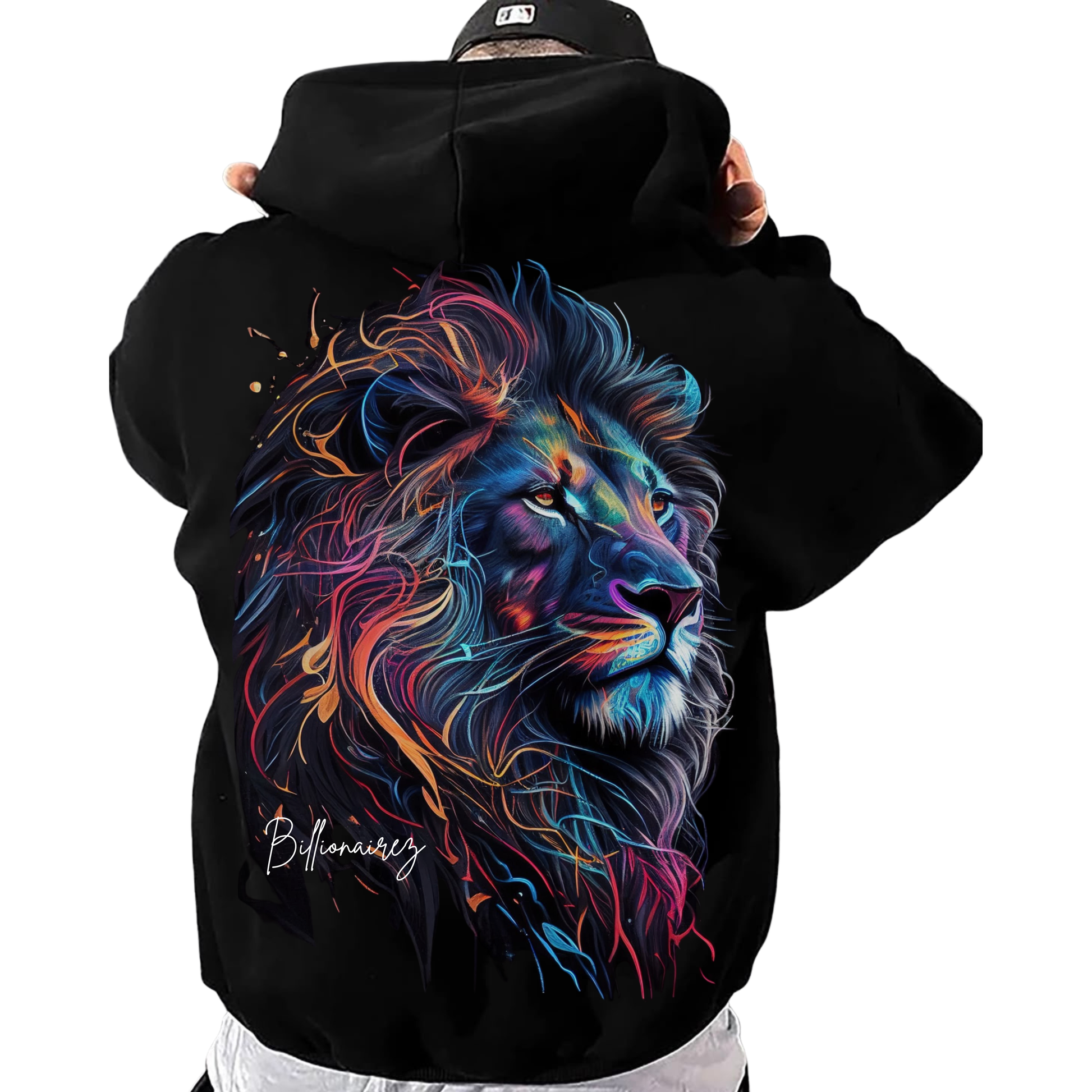 The BillionaireZ Fearless Lion Hoodie is built for those who lead without asking permission. Featuring a powerful, full-back lion artwork in vibrant electric tones, this piece symbolizes dominance, courage, and silent authority. The lion doesn’t chase — it commands.