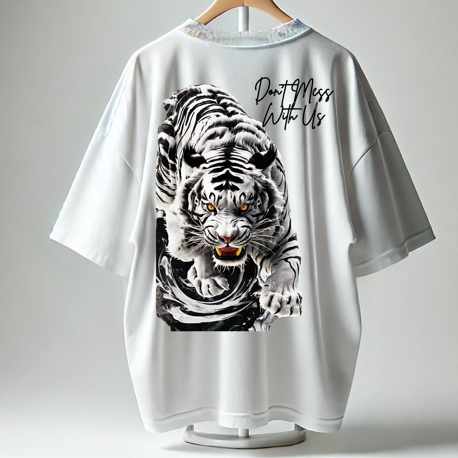 Unleash the beast within. The White Tiger Energy oversized tee is more than just a statement—it’s a warning. Designed for the bold and untamed, this piece radiates raw power and fearless confidence.