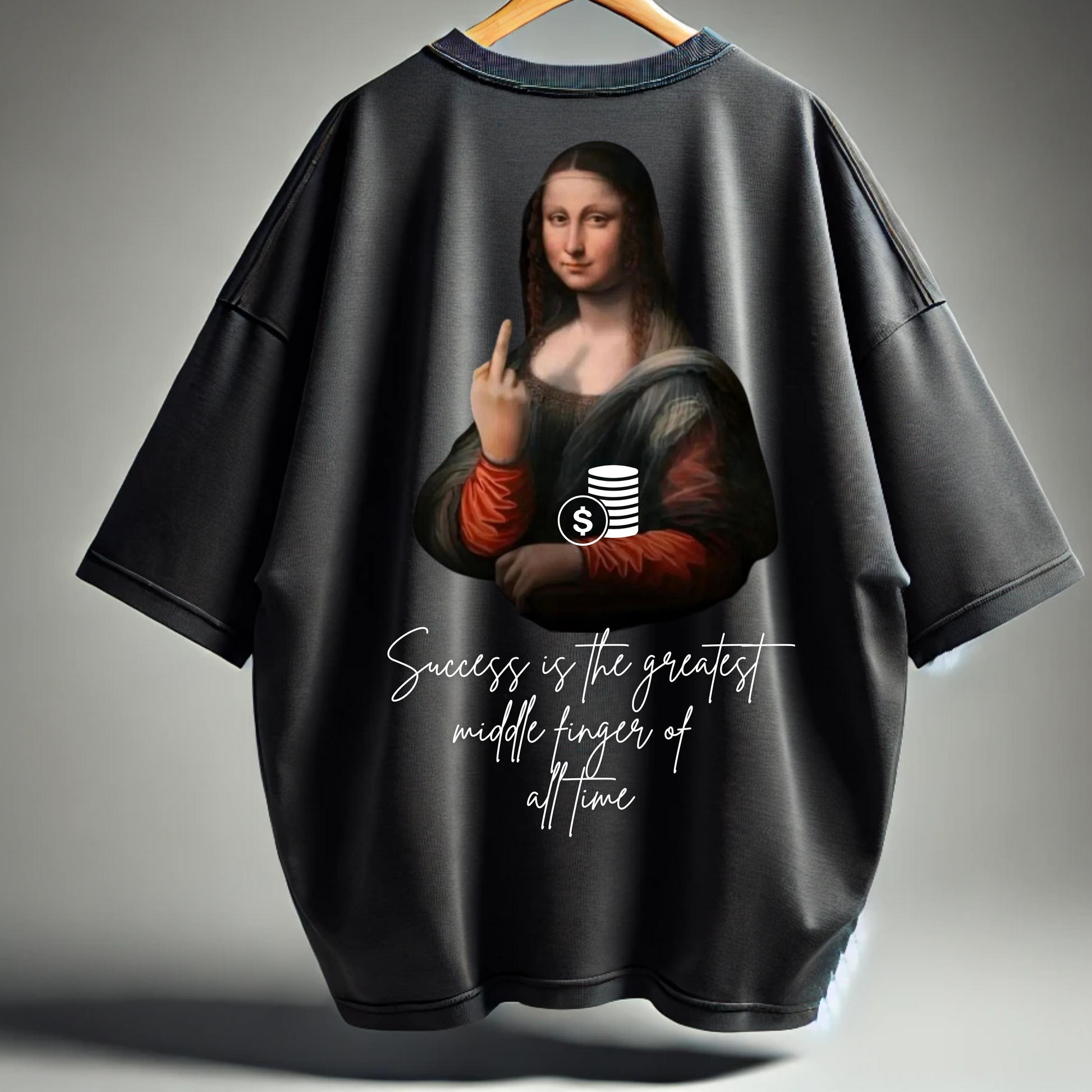 Featuring an iconic masterpiece with a rebellious twist, this oversized tee is for those who let their achievements do the talking. Own your success, wear your confidence.