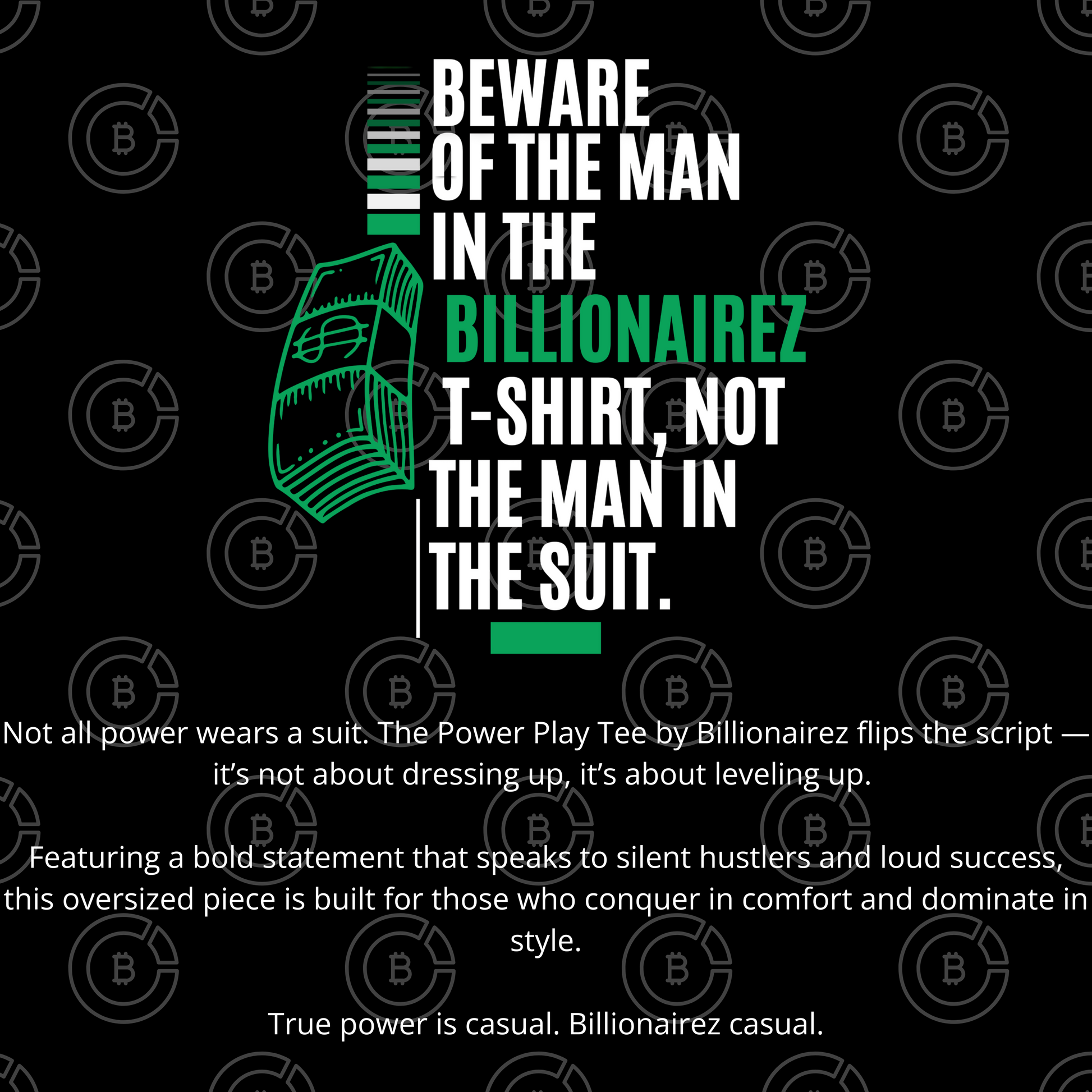 Not all power wears a suit. The Power Play Tee by Billionairez flips the script — it’s not about dressing up, it’s about leveling up. Featuring a bold statement that speaks to silent hustlers and loud success, this oversized piece is built for those who conquer in comfort and dominate in style.