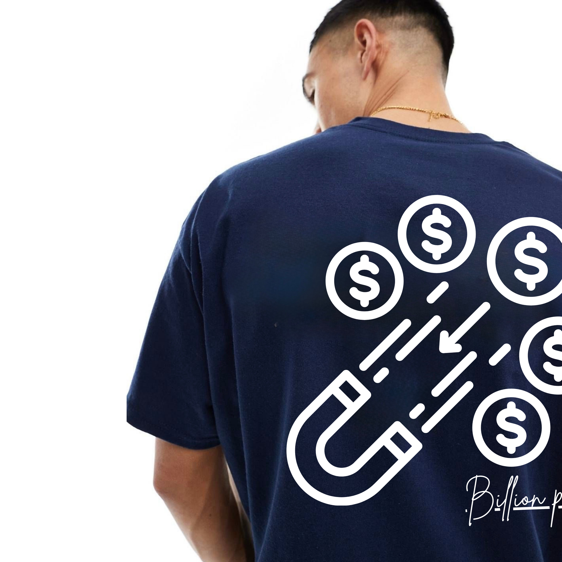 Attract the energy you wear. The Billion Pull Tee is where wealth meets mindset — a bold graphic of a magnetic pull drawing in dollars reflects your unstoppable hustle. Crafted with 240 GSM 100% cotton, oversized fit, and high-density soft print, this tee is your symbol of ambition and power. Wear it loud. Feel the pull.