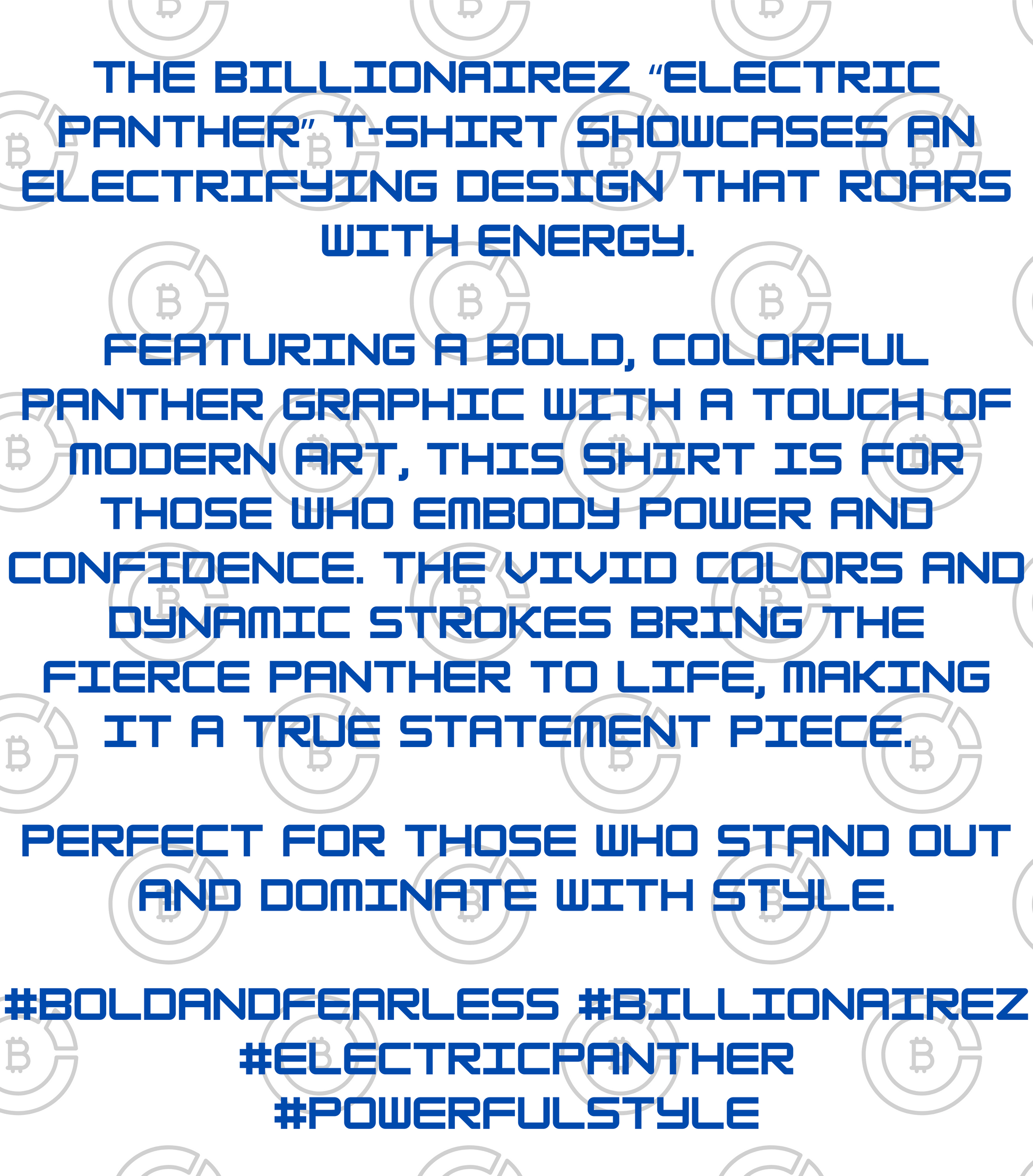 The BillionaireZ “Electric Panther” T-shirt showcases an electrifying design that roars with energy. Featuring a bold, colorful panther graphic with a touch of modern art, this shirt is for those who embody power and confidence.