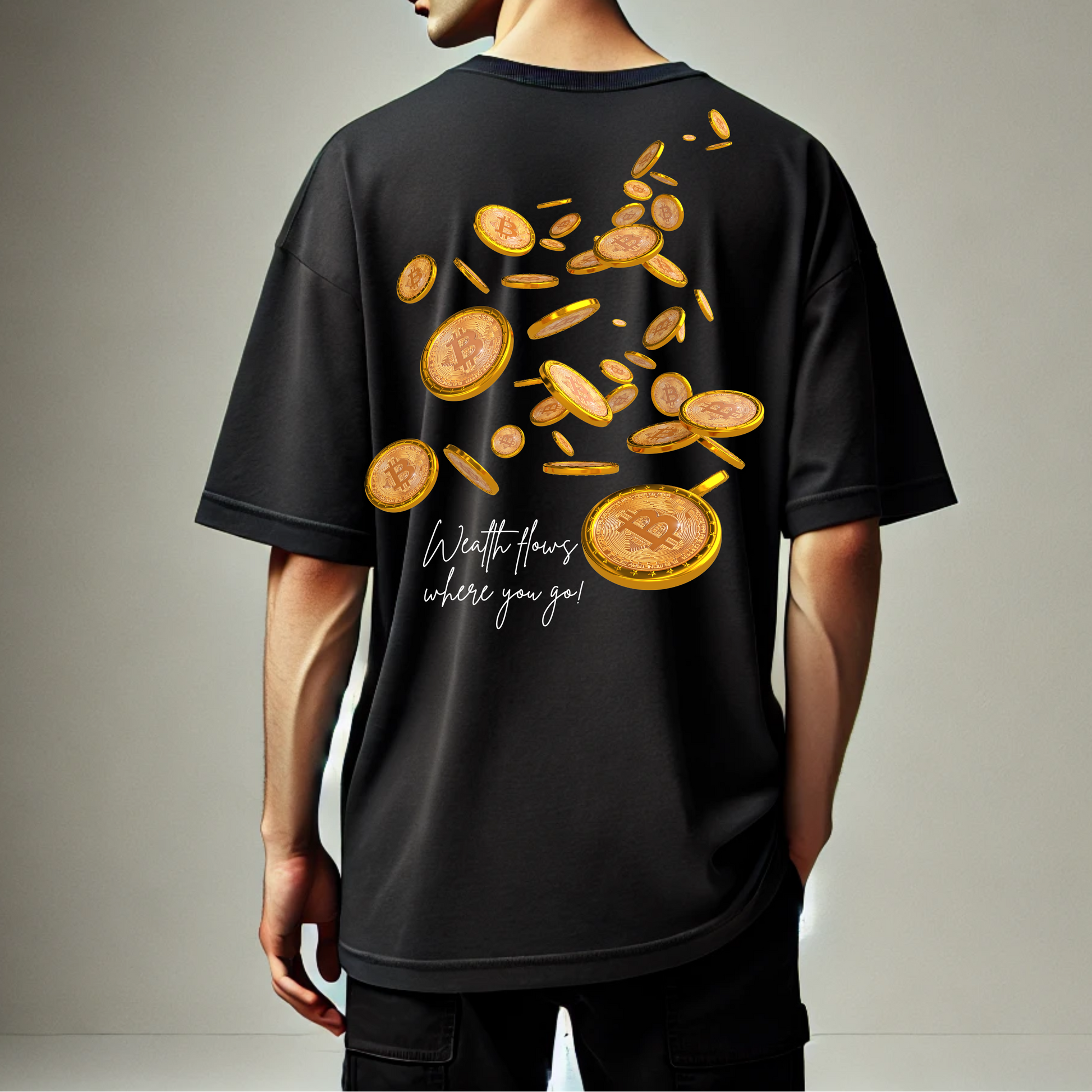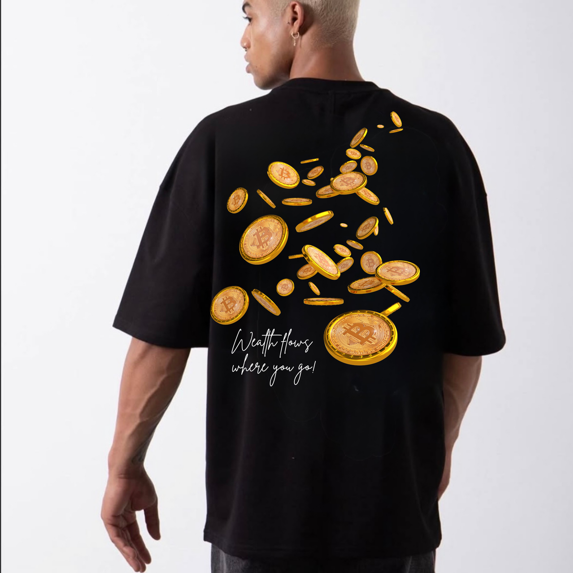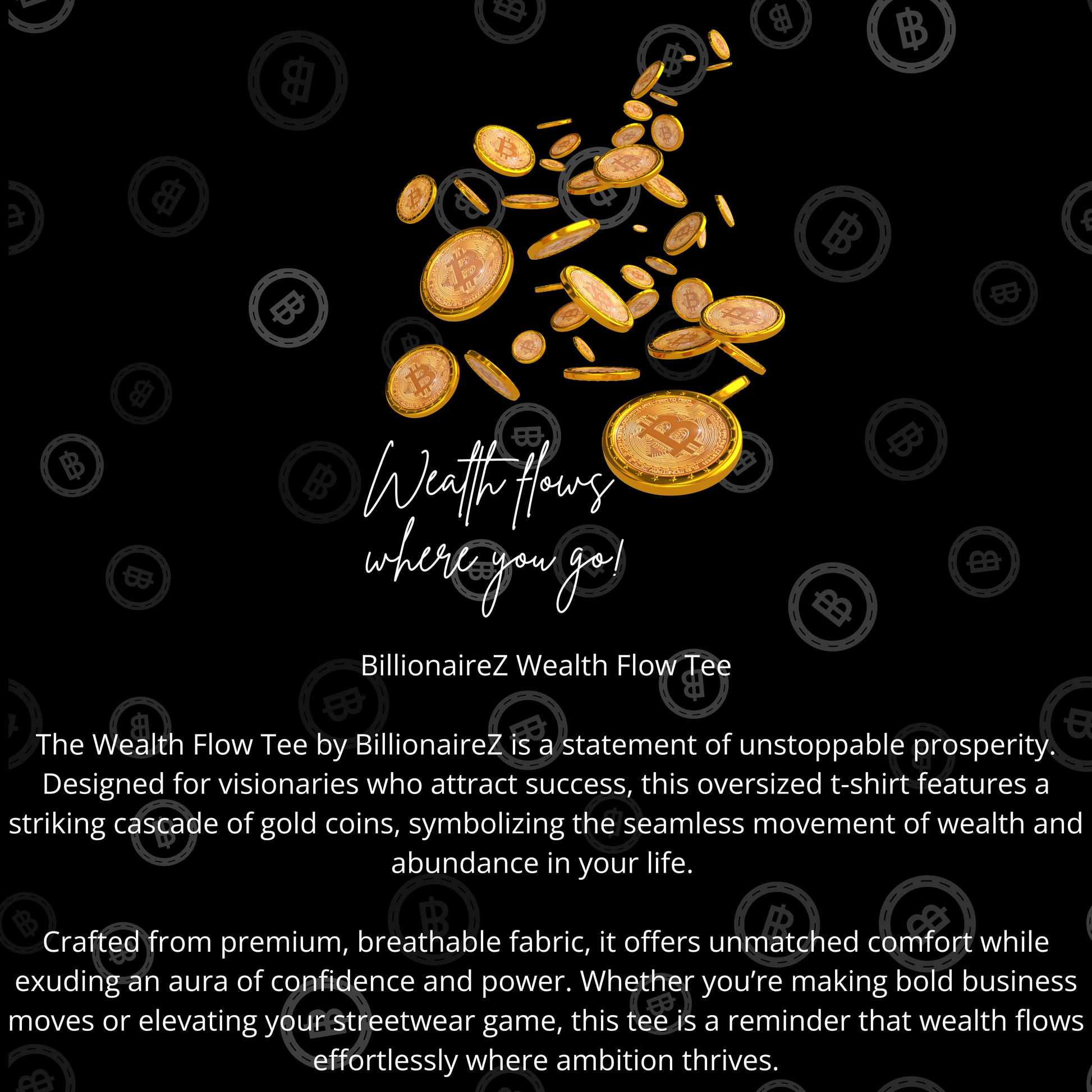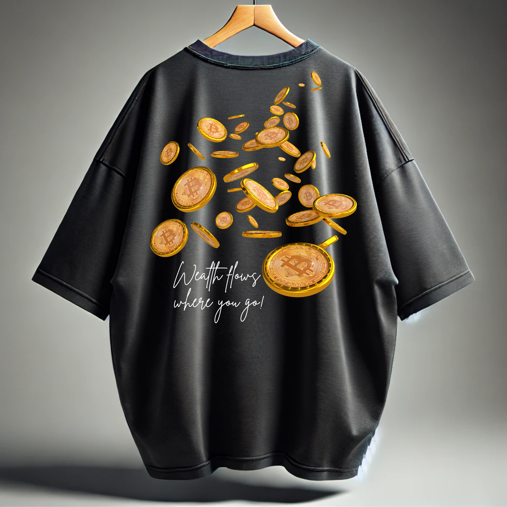The Wealth Flow Tee by BillionaireZ is a statement of unstoppable prosperity. Designed for visionaries who attract success, this oversized t-shirt features a striking cascade of gold coins, symbolizing the seamless movement of wealth and abundance in your life.