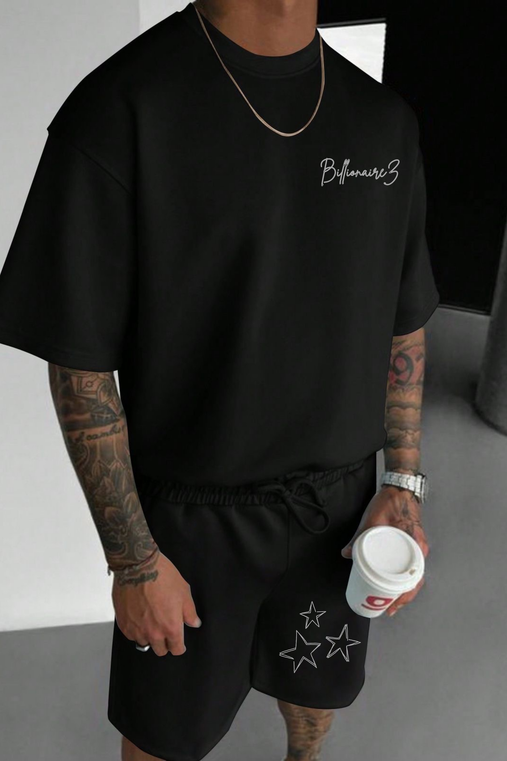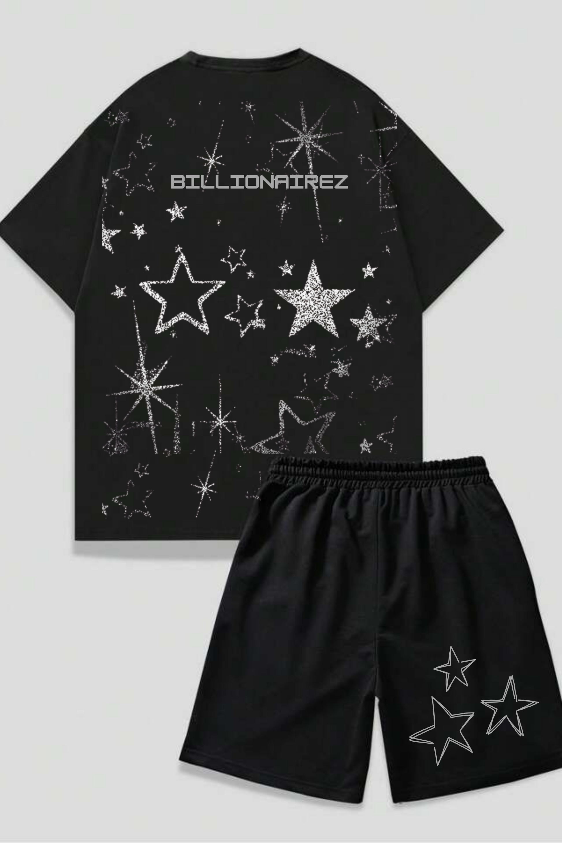 Turn every sidewalk into your runway with the Stardust Syndicate coord set by BillionaireZ. Designed with shimmering starburst graphics and cosmic detail, this oversized black set is made for the ones who shine loud and dream louder. Crafted in breathable cotton for bold comfort — because your aura deserves nothing less than a galaxy of its own.