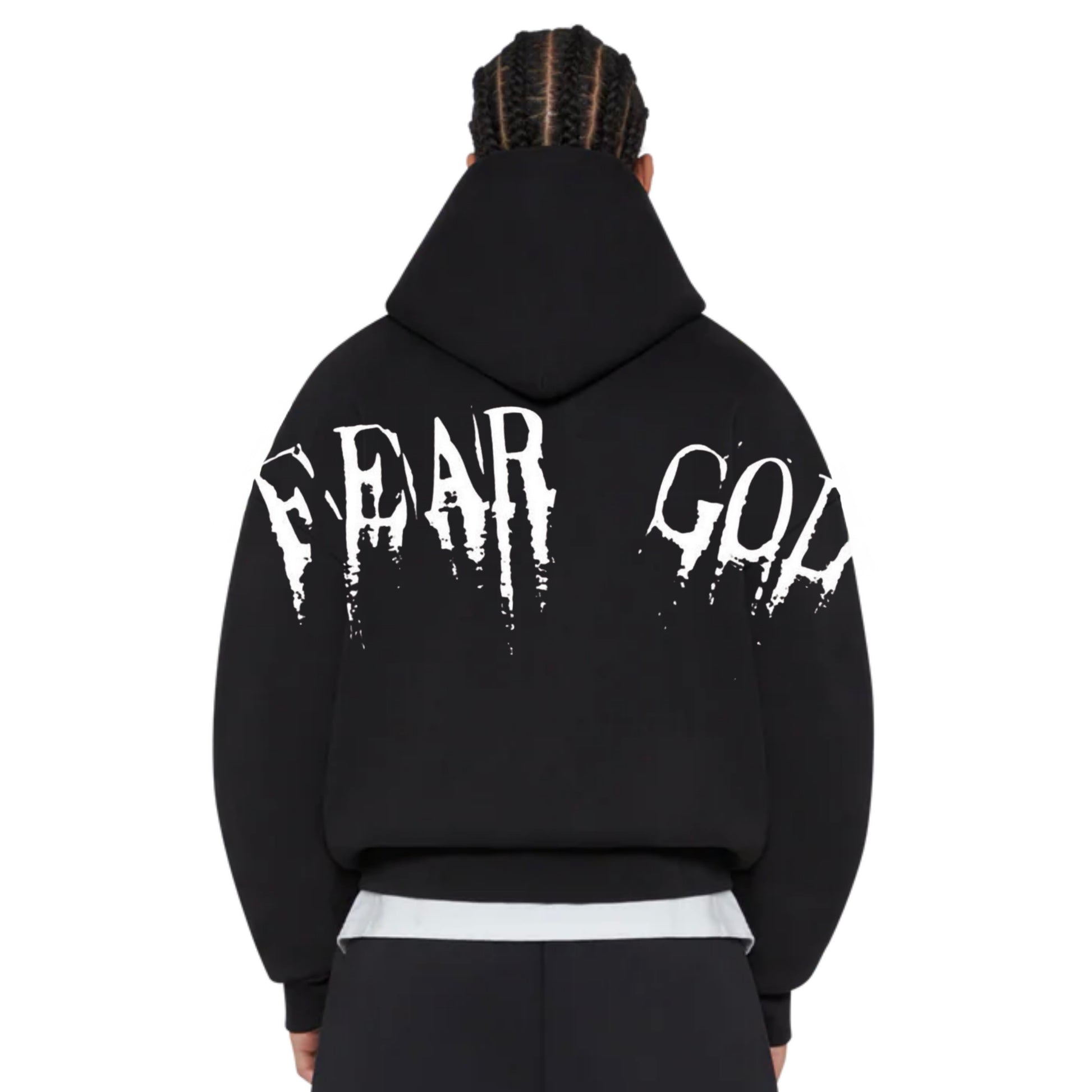Back print: FEAR GOD — a reminder to answer to a higher purpose, not the noise of the world.