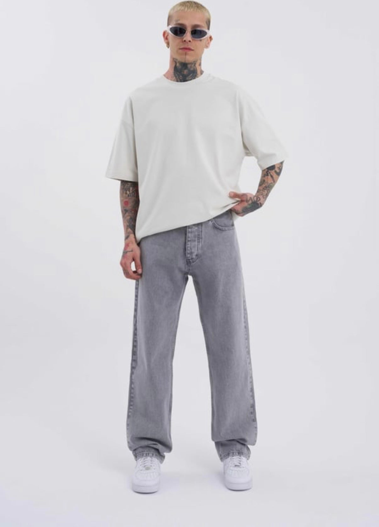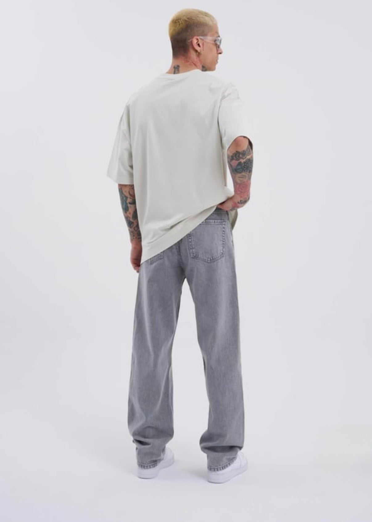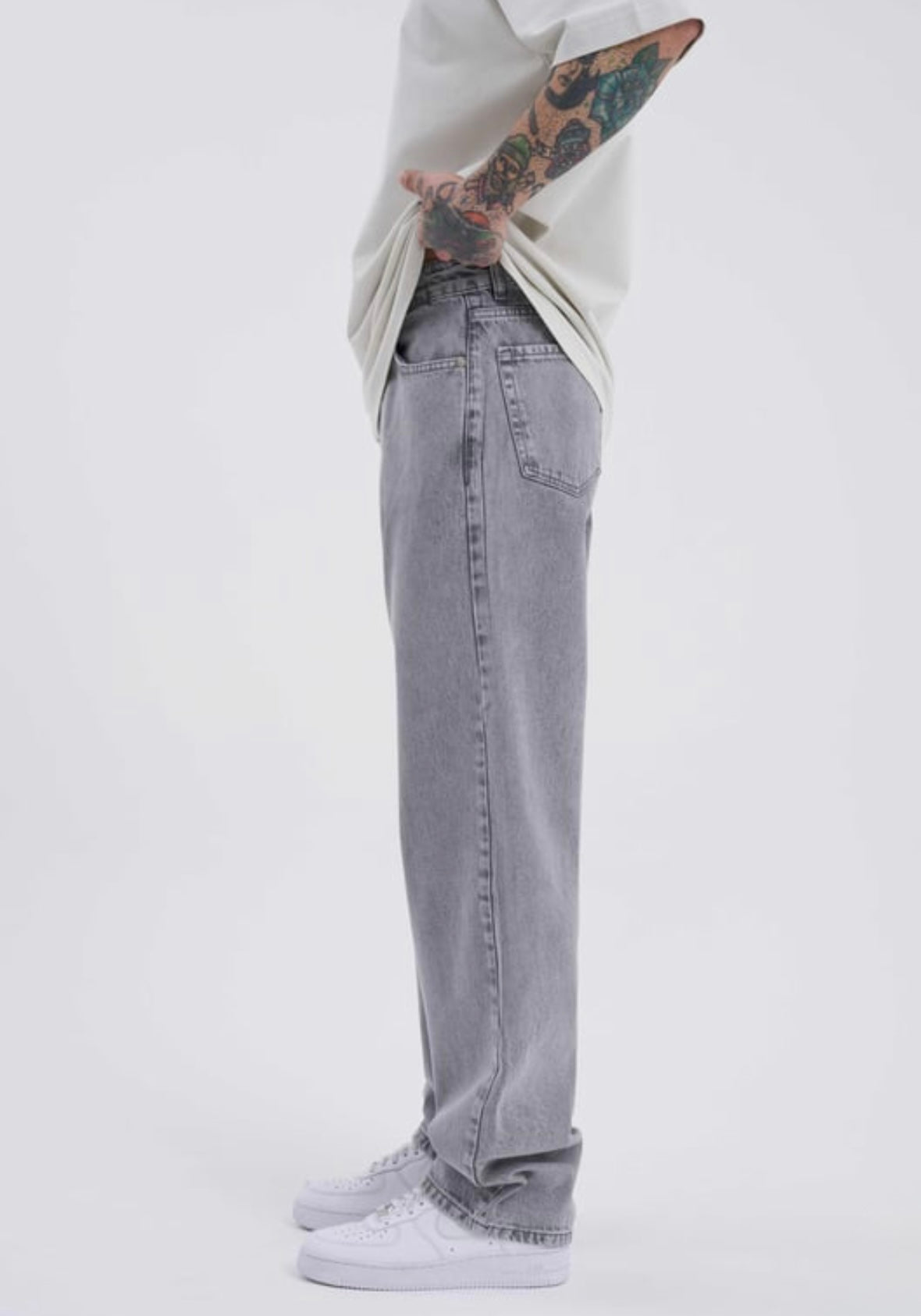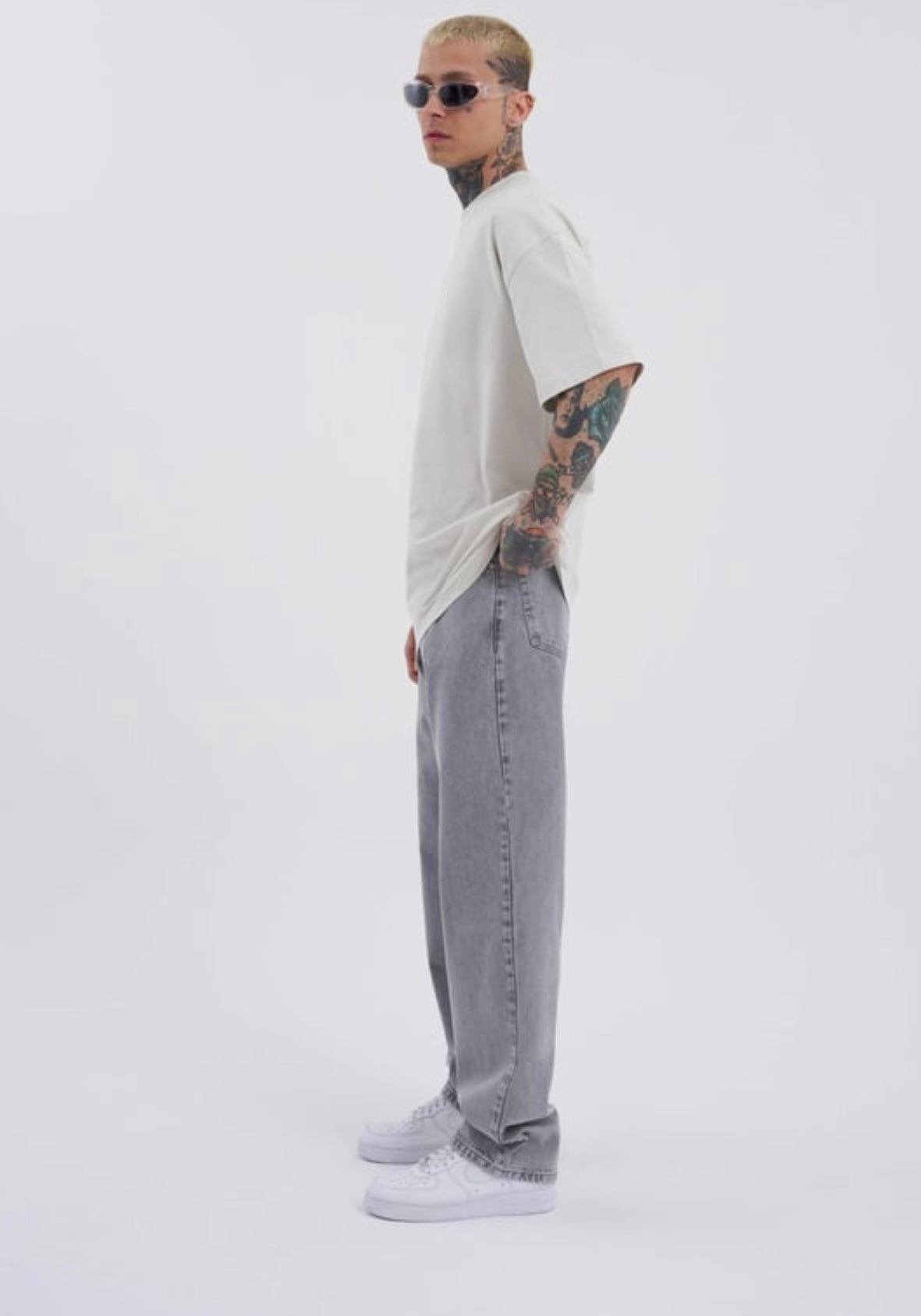 Step into the street with quiet dominance. These light grey, stone-fade jeans combine a crisp silhouette with a laid-back edge, giving you a fit that balances street-ready ease with runway-level precision.