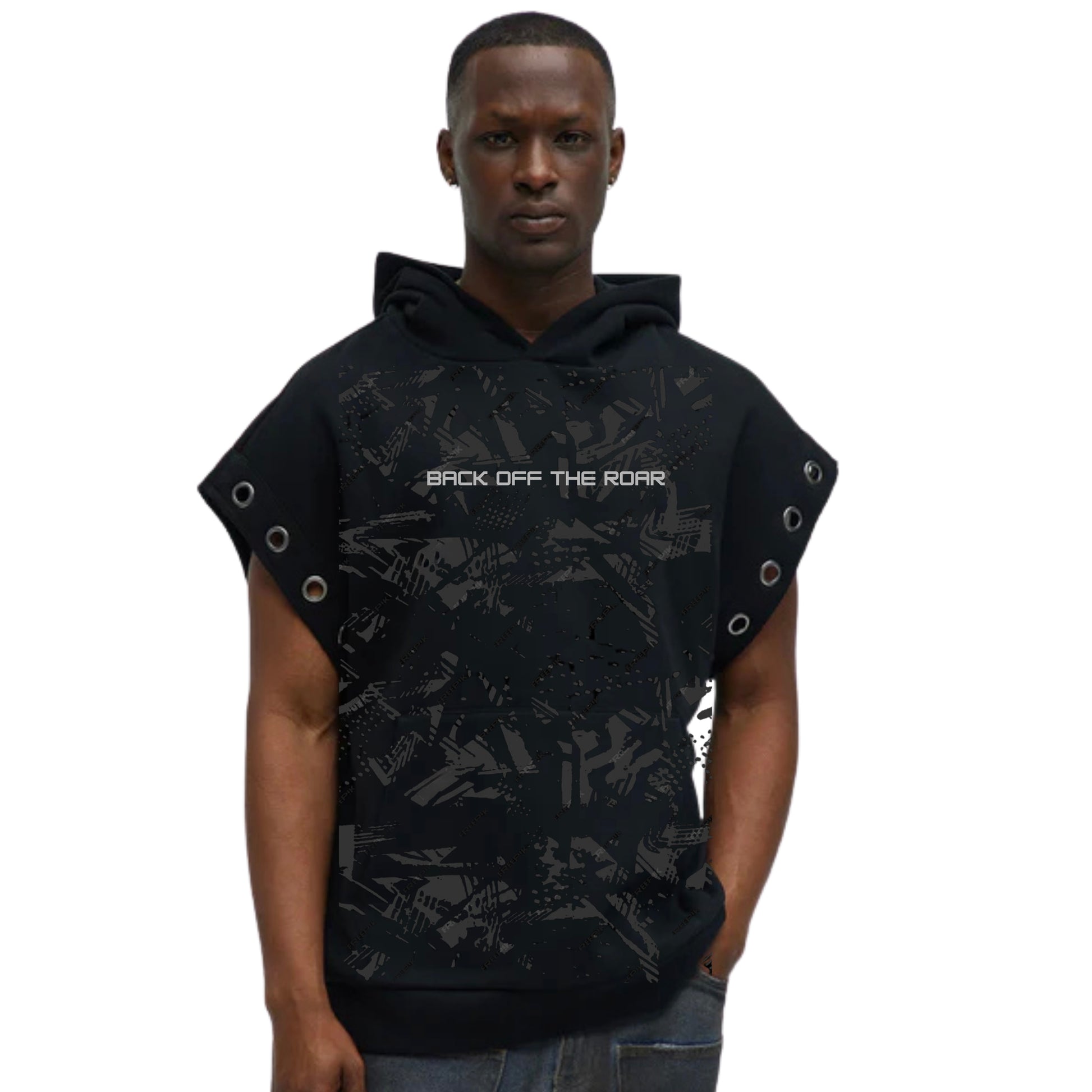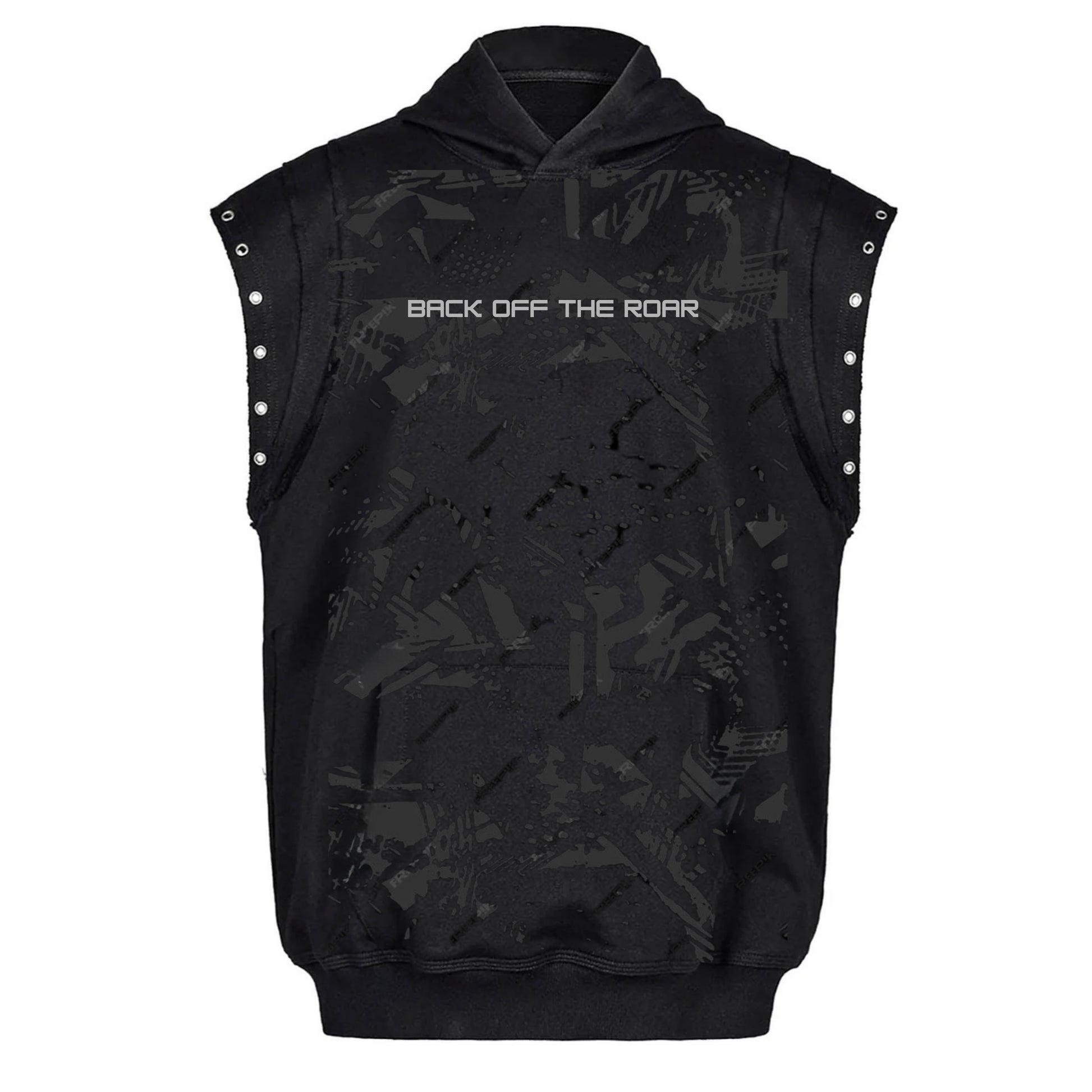 The Back Off: The Roar Hoodie Tee from BillionaireZ is crafted for those who carry quiet confidence and unshakable presence. Featuring a sleeveless hooded silhouette with heavy-duty metal eyelet detailing, this piece delivers a raw, tactical street aesthetic.