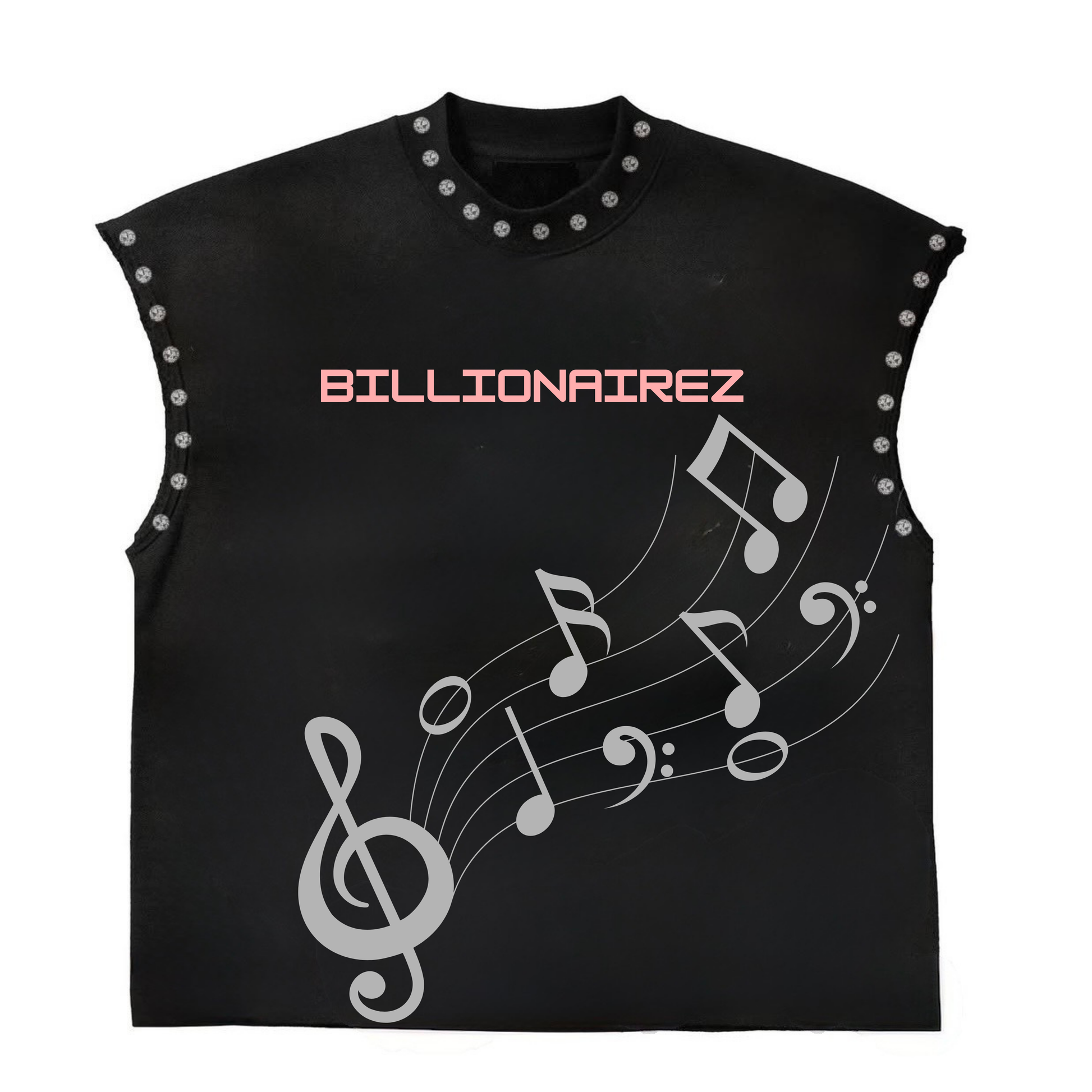 Channel raw passion and rebellious rhythm in the Music Junkie Studded Vest — an unapologetic nod to every soul who’s ever healed through headphones. This black muscle tee features bold silver musical notes flowing across the front, accented with luxe metallic studs on the neckline and sleeves for a punk-luxe vibe.