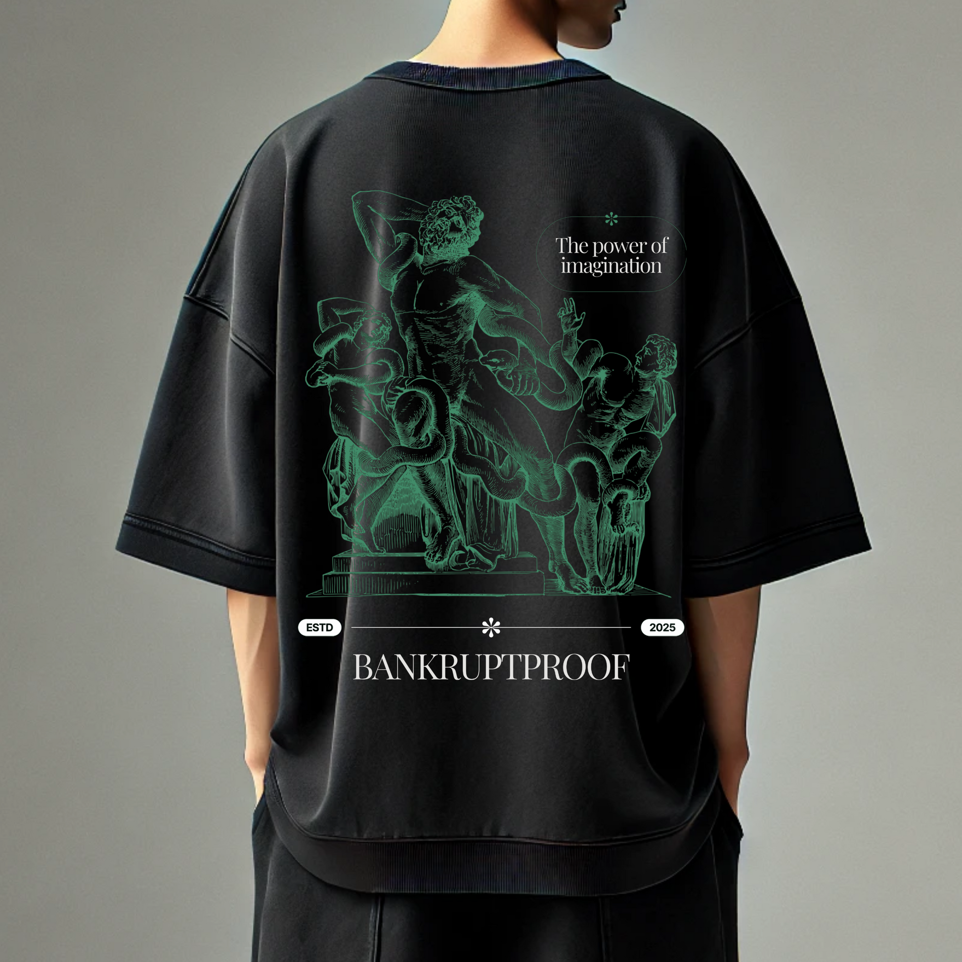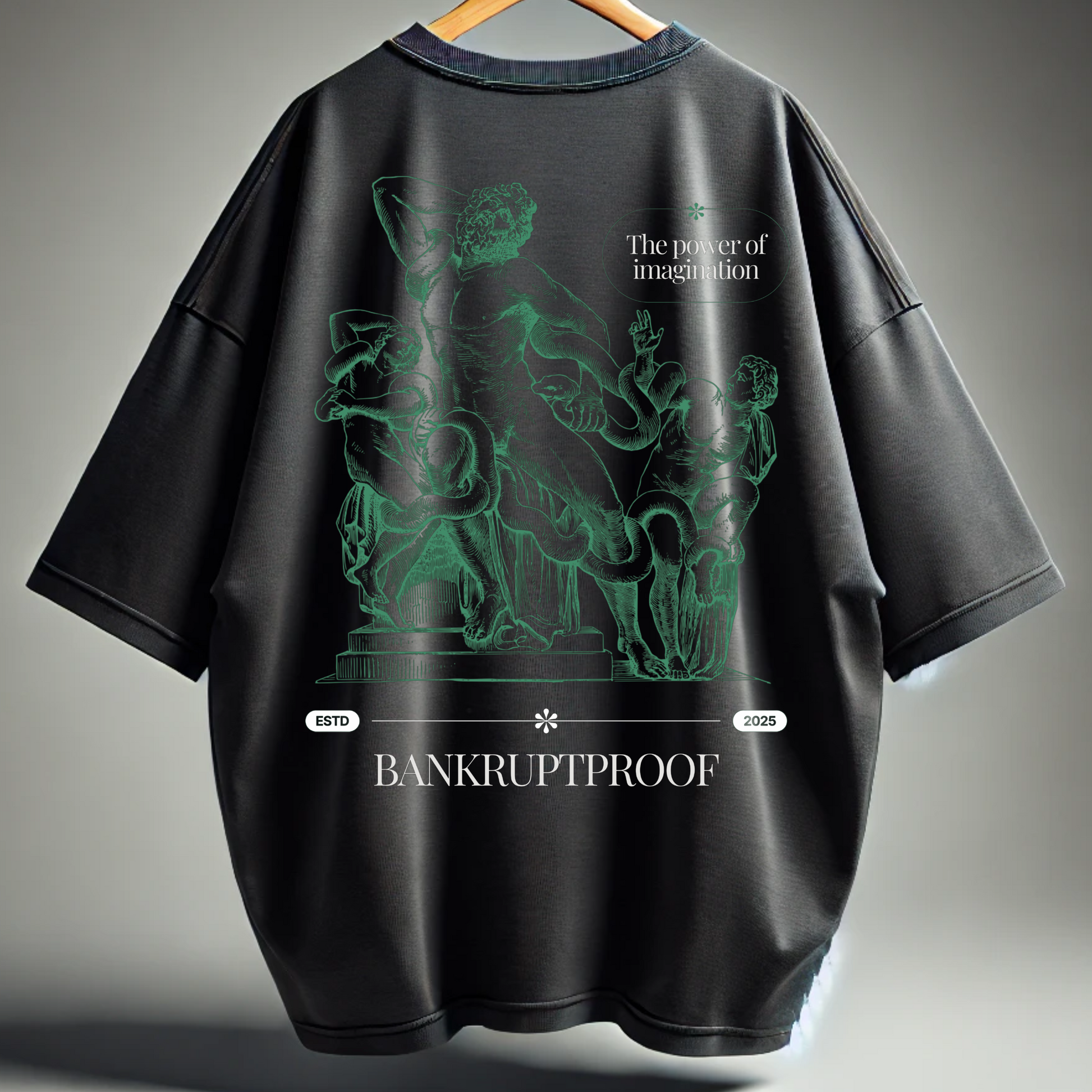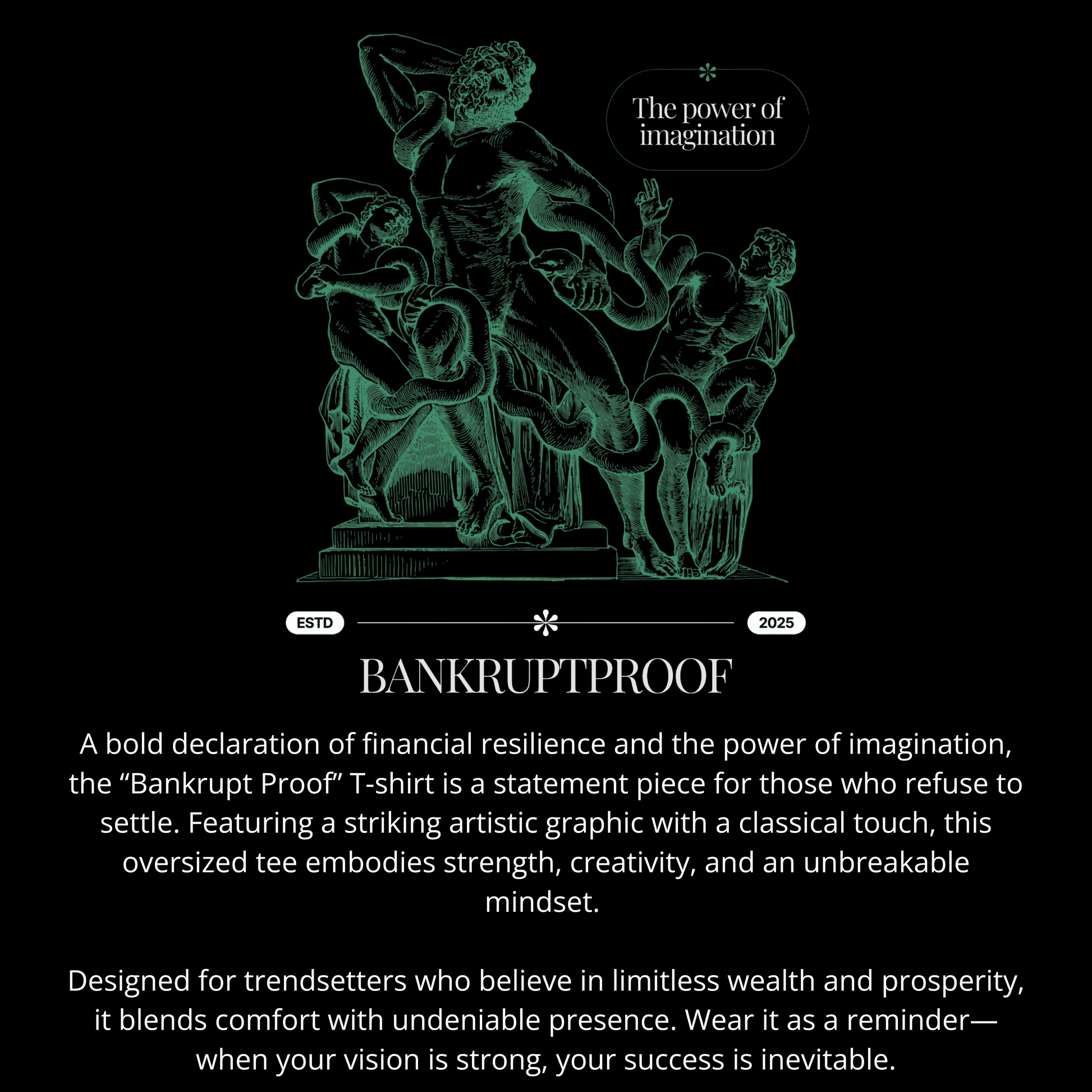 A bold declaration of financial resilience and the power of imagination, the “Bankrupt Proof” T-shirt is a statement piece for those who refuse to settle. Featuring a striking artistic graphic with a classical touch, this oversized tee embodies strength, creativity, and an unbreakable mindset.
