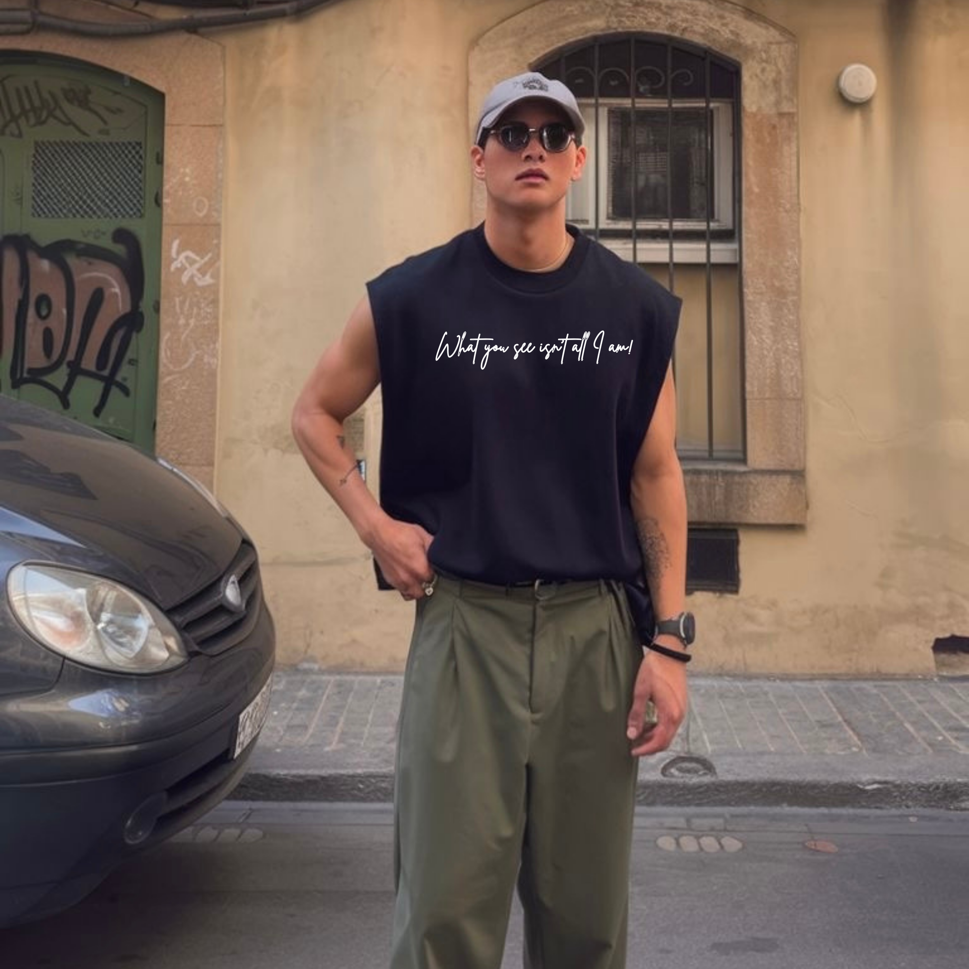 Unleash your inner beast with the Fearless Oversized Cutoff Tee by BillionaireZ. The back showcases a fierce three-headed hound illustration, dripping with raw energy and dominance, paired with the bold “Fearless BillionaireZ” branding. The front delivers a thought-provoking statement – “What you see isn’t all I am” – reminding the world there’s more than meets the eye. Crafted in premium cotton with a relaxed, sleeveless fit, this piece is perfect for making a statement in streetwear culture.